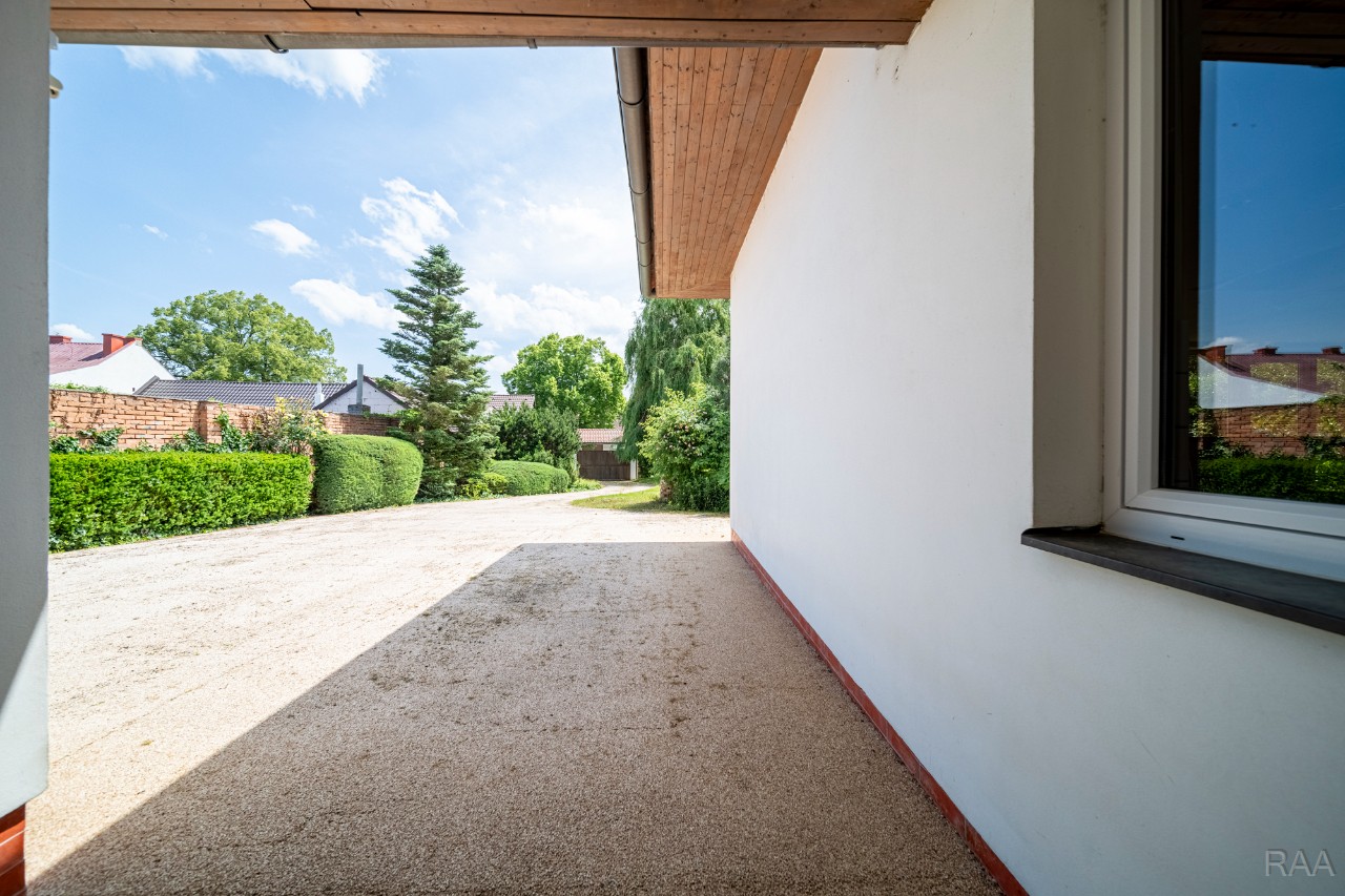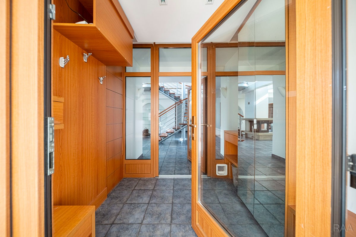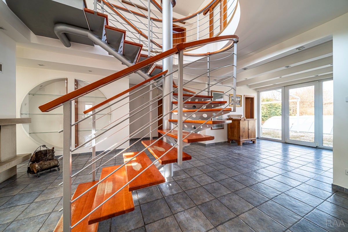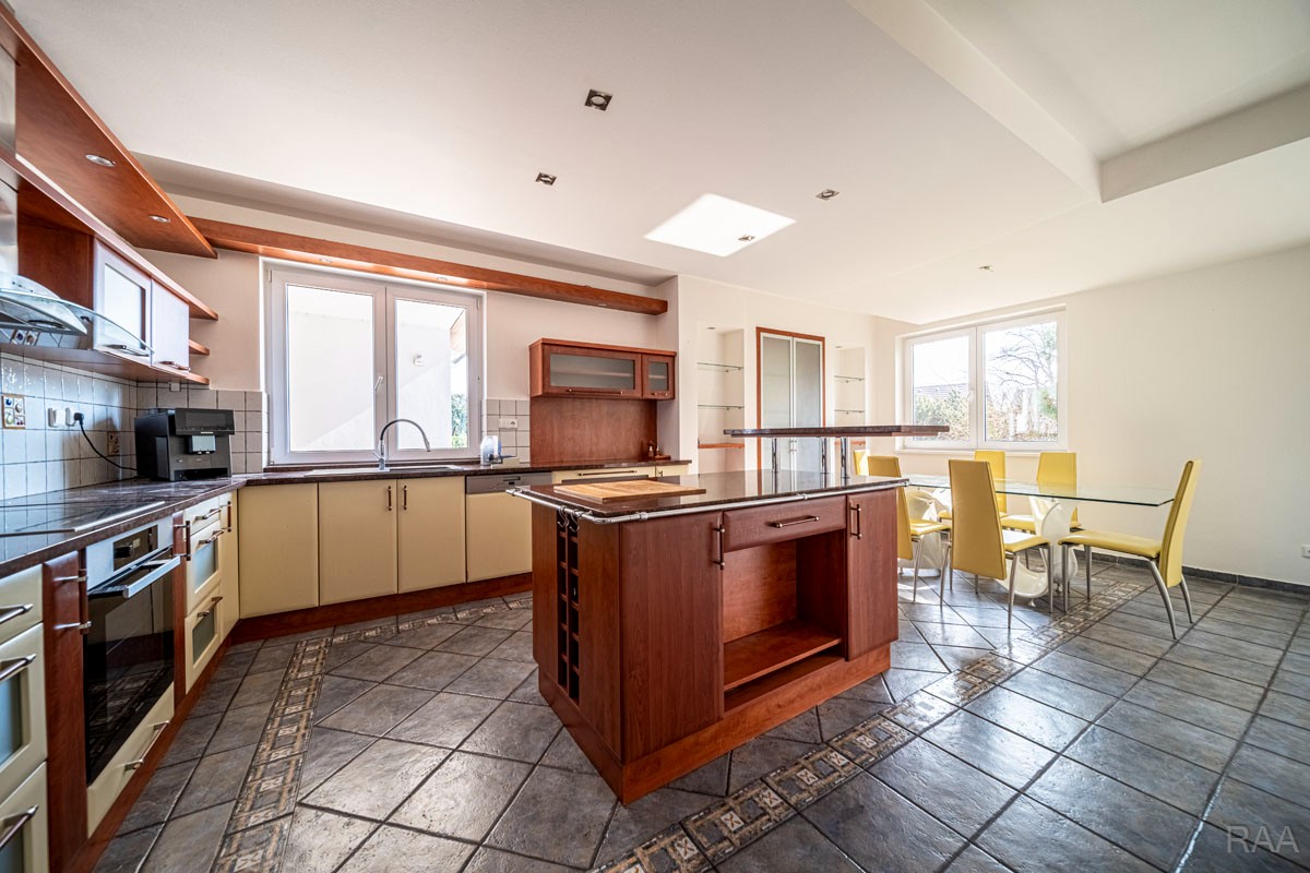 Prodej nadstandardního rodinného domu v obci Kudlovice (cca 9km vzdáleno od Uherského Hradiště, cca 11 minut po dálnici D55). Pozemek celkem 2545m². Užitná plocha domu 250m². Venkovní zastřešený bazén s filtrací má rozměry šířka 5m x délka 10m x hloubka 1,6m, zastřešení je zasouvatelné. Dům je ideálním útočištěm pro ty, kdo hledají klid a bezpečí - od ulice jej chrání masivní zídka, která zajišťuje naprosté soukromí a chrání pozemek před pohledy zvenčí. Příjezd k domu po obecní asfaltové silnici. Napojeno na všechny inženýrské sítě: elektřina, vodovod, kanalizace, plyn. Vytápění plynovým kotlem se zásobníkovým ohřívačem teplé vody. Dům je jednopodlažní, nepodsklepený s obytným podkrovím. Základy železobetonové pasy, svislé nosné a obvodové stěny betonové systému ztraceného bednění VELOX, z exteriéru opatřeno kontaktním zateplovacím systémem, vnitřní příčky z plynosilikátu YTONG, zastřešení glazovanými keramickými taškami, klempířské prvky z mědi, na střeše osazen bleskosvod. Podlahy keramické dlažby, v 2. NP (podkroví) plovoucí podlahy. Venkovní okna a dveře plastová s termoizolačním dvojsklem. Vnitřní dispozice: 1.NP (přízemí): garáž pro 2 os. automobily, technická místnost, vstup do domu, obytný prostor s krbem a centrálním schodištěm do patra, kuchyně s jídelním koutem, pracovna, pokoj, koupelna s rohovou vanou a sprchovým koutem, samostatné WC; 2.NP (podkroví): schodišťový prostor, 3x pokoj, koupelna, 2x terasa, 2x šatna, půdní prostory. Kolem domu je okrasná udržovaná zahrada se vzrostlými stromy. Vstup na pozemek z ulice přes portál s brankou a automatickou vjezdovou bránou, přičemž portál je umístěný v zídce o výšce 2,2m, uliční šířka pozemku 23m. Vše funkční a ve výborném stavu, výstavba v r. 2004. Volné ihned.